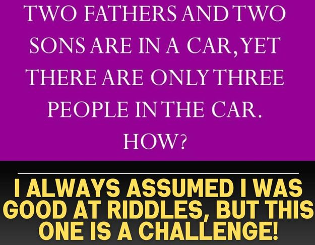 Two fathers and two sons are in a car, yet there are only three people in the car. How?