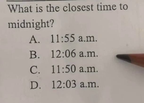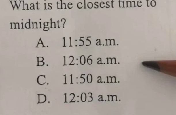 In June 2023, @yawdmontweet, a Reddit user from Jamaica, posed a question that stumped participants and fueled an international discussion: “What is the closest time to midnight?” The query, seemingly straightforward, provided four options: A. 11:55 a.m., B. 12:06 a.m., C. 11:50 a.m., and D. 12:03 a.m.