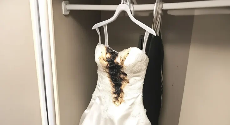 As I reached out with trembling hands to touch the fabric, I saw the huge, ugly burn marks scarring the delicate lace and beading.