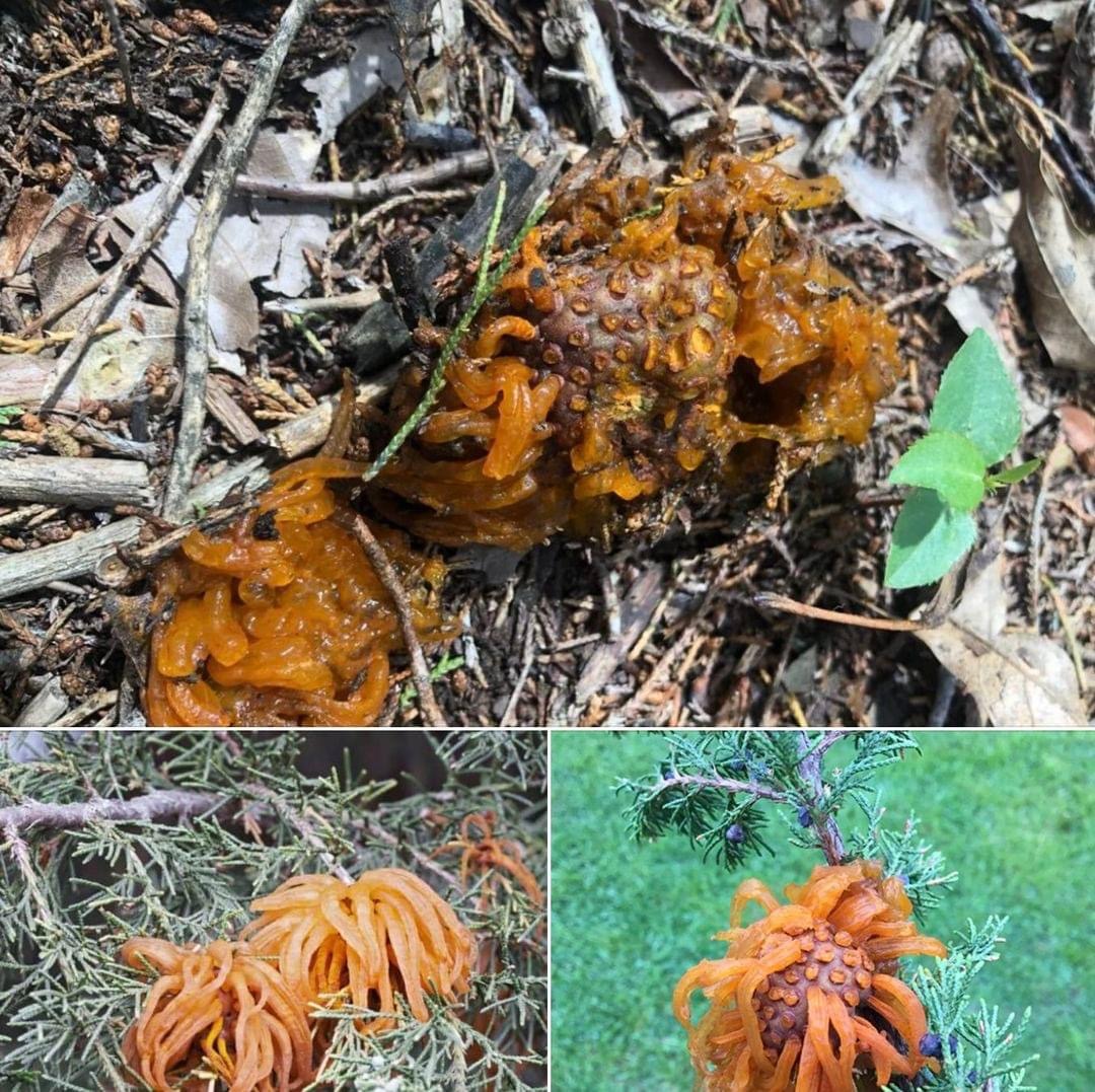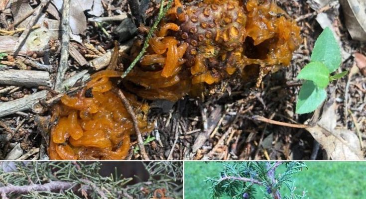 This mysterious phenomenon turned out to be a type of rust disease called cedar-apple rust. It requires two hosts to complete its life cycle, with apples and crabapples being the most commonly affected. While the name suggests that cedars are involved, it can actually appear on juniper trees as well.