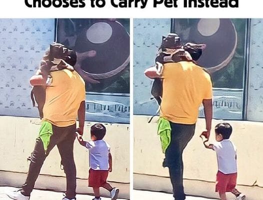 In the video, the man can be seen effortlessly cradling his furry friend in one arm while clasping his son’s hand with the other. The caption accompanying the video reads, “When your priority is your dog, not the child.” This playful remark has prompted people to reflect on their own relationships with their pets and children.