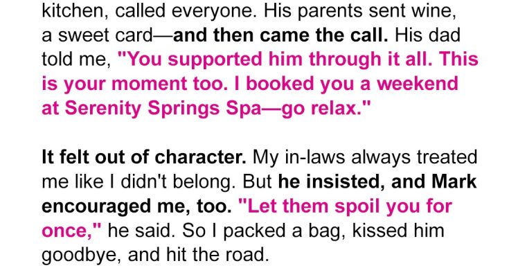 My FIL Insisted I Go On a Spa Weekend He Paid For – Halfway There, My Neighbor Called Screaming, ‘It Was All Their Plan! Go Back Now!’