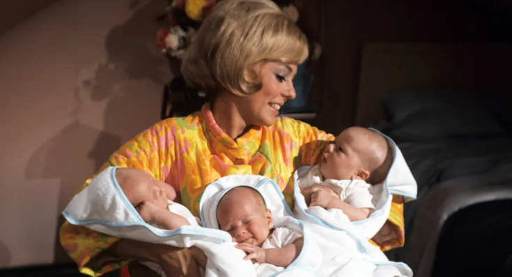An undated image of triplets and Tina Cole on the set of “My Three Sons” | Source: Getty Images