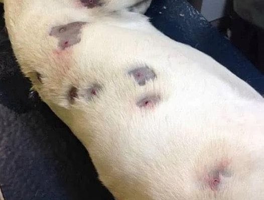 Jackson’s fur had to be shaved almost entirely by the veterinarian in order to remove the numerous plastic shells. He had to leave 20 rounds where they were and extracted a total of 27 bullets.